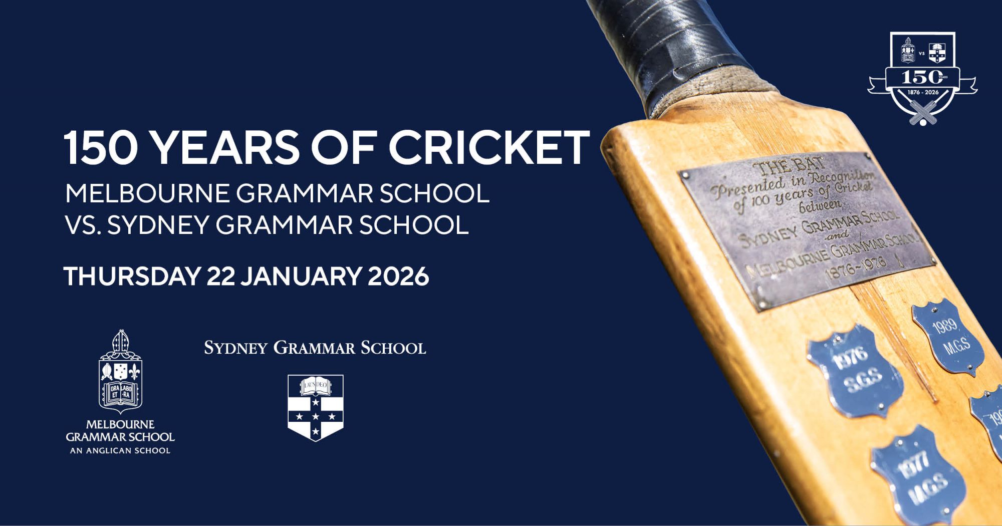 To celebrate this remarkable 150-year tradition, Melbourne Grammar School warmly invites current and former players, staff, coaches, and the families of the 2026 teams from both Schools to a commemorative dinner at the Melbourne Cricket Ground on Thursday 22 January 2026.